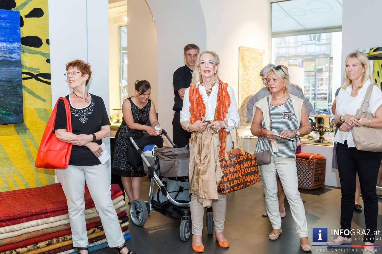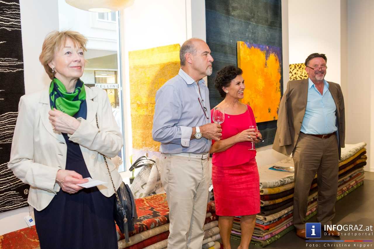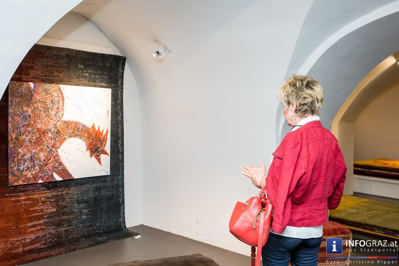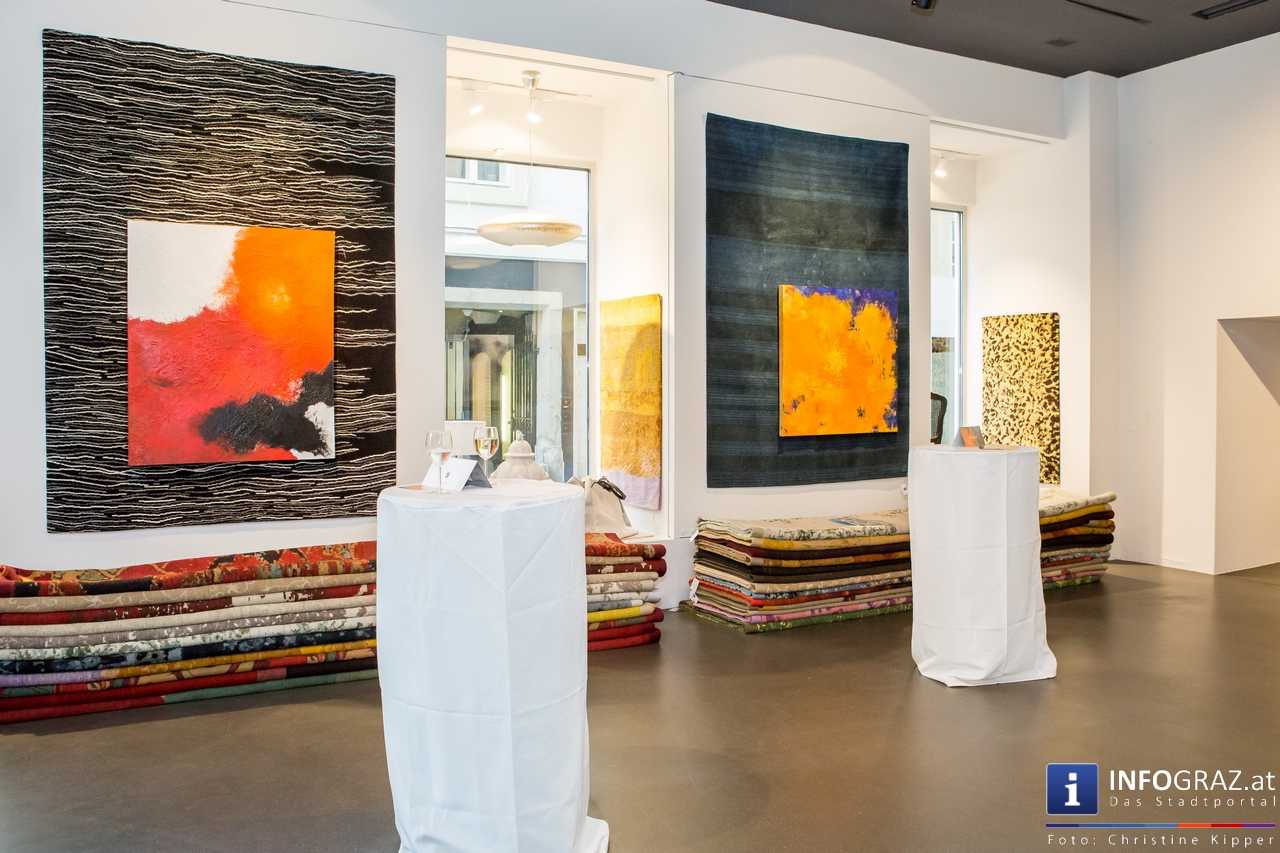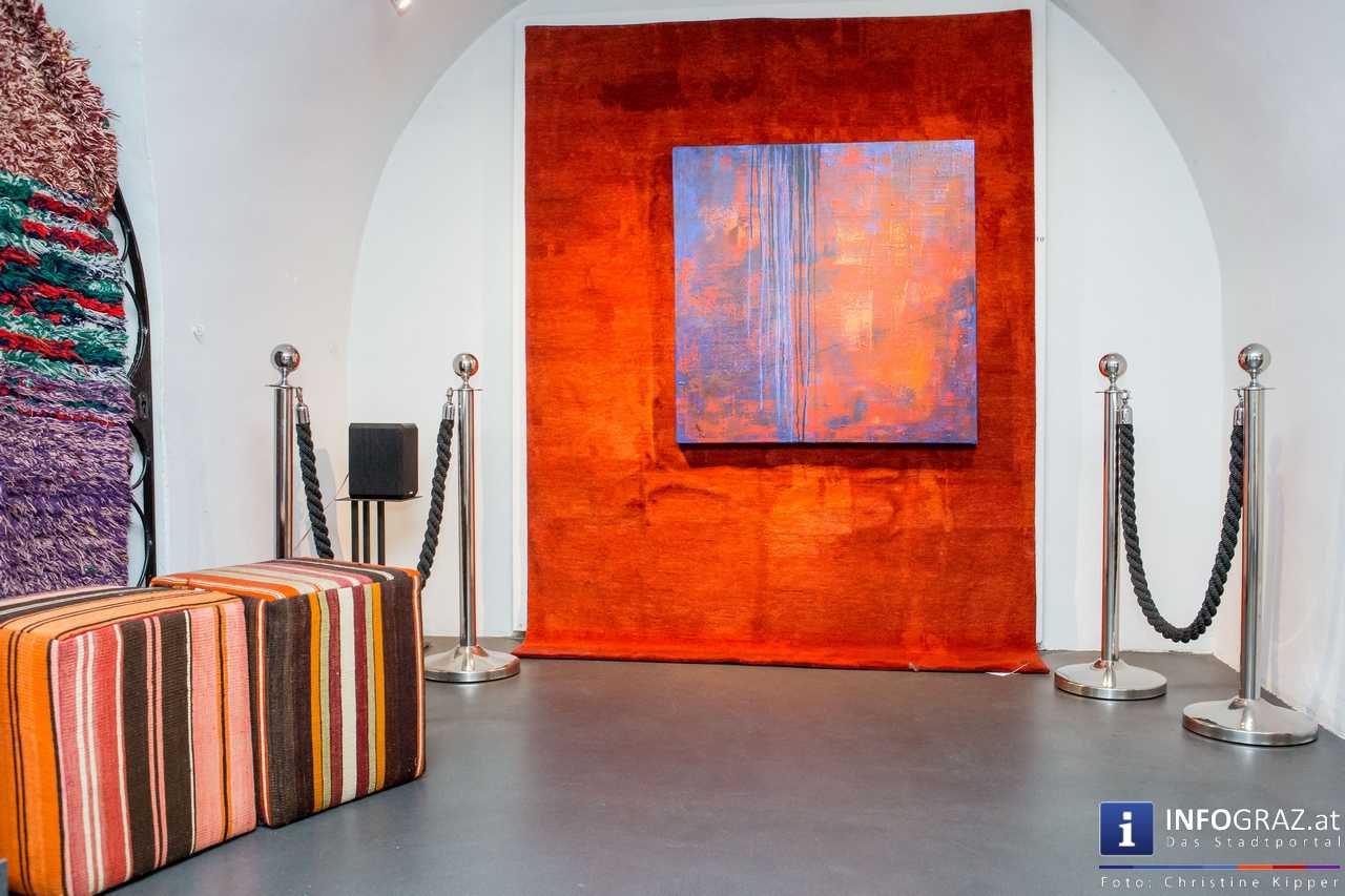 Einer Vernissage der besonderen Art konnte man am Mittwoch in der Teppichgalerie Geba in der Hans-Sachs-Gasse in Graz beiwohnen. Teppichkunst trifft Malerei – Kunstwerke der Künstlerin Beate Rüsch wurden gekonnt mit Teppichkunstwerken in Szene gesetzt.