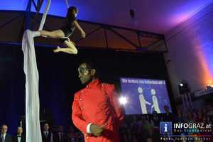 Für die Organisation verantwortlich zeigte sich der Verein Dance and make a difference und die Tanzschule Conny&Dado. Pünktlich um 21:00 Uhr wurde das Event mit der Polonaise eröffnet. Behinderte und nichtbehinderte Tänzer, unter anderem die Swinging Wheels mit einer Rollstuhl Choreographie – zeigten ihr tänzerisches Können. Mit einem a capella Ständchen der Styrian Voices und nach den Eröffnungsreden von Tanzschulchefin Conny Leban-Ibrakovic und Stadtrat Kurt Hohensinner war der Ball eröffnet.