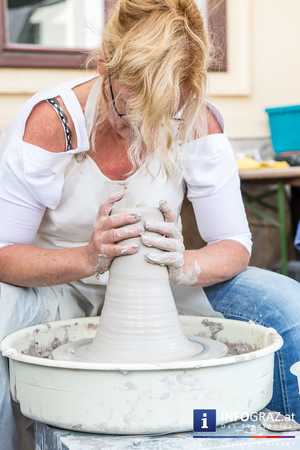 Im stimmungsvollen Ambiente am Karmeliterplatz – am Sonntag sogar bei Sonnenschein - konnte man um die Wette töpfern, Livemusik hören und den Profis über die Schulter schauen.