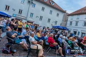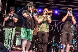 Traumhaftes Sommerfeeling ergab einen musikalischen Genuss. Mit dem neuen Album “DAMMAWOS” präsentieren die Musiker der Weinviertler Band den Weinviertler Dialekt als gelebtes Kulturgut. Skolka kombinieren Gesang, Posaunen, Trompeten, Kontrabass, Gitarren zu einer Musik, bei welcher man nicht regungslos bleiben kann.