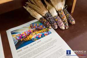 Auch den “schönsten Mais der Welt” in den Farben blau-pink-rot gab es beim Saatgutfest. Die Samen dieser Sorte des Züchters Carl “White Eagle” Barnes gibt es kaum noch und sind deswegen eine Rarität.