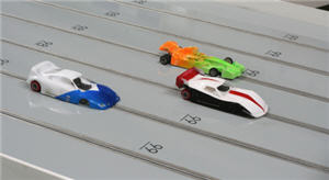 Slotcar-Bahnen heißen so, weil die Fahrspuren, die über zwei Leiterbahnen mit Strom versorgt werden, einen Schlitz (engl.: slot) besitzen. Die Spieler steuern ihr Auto mit Handreglern, und das Ziel ist das selbe wie bei „echten“ Autorennen: