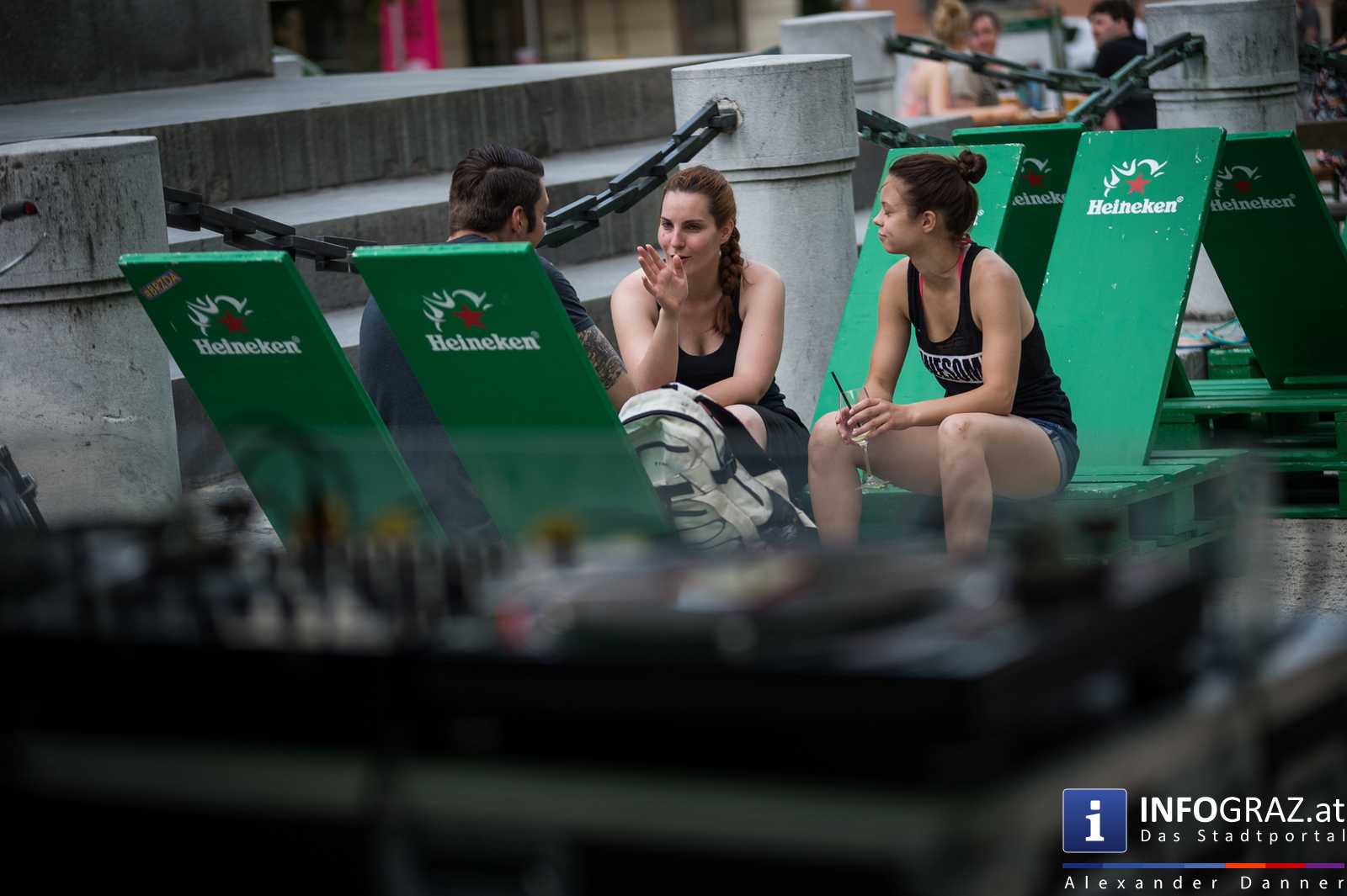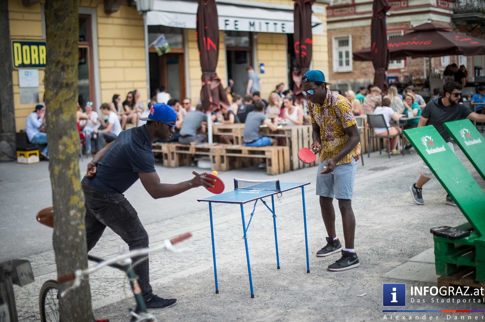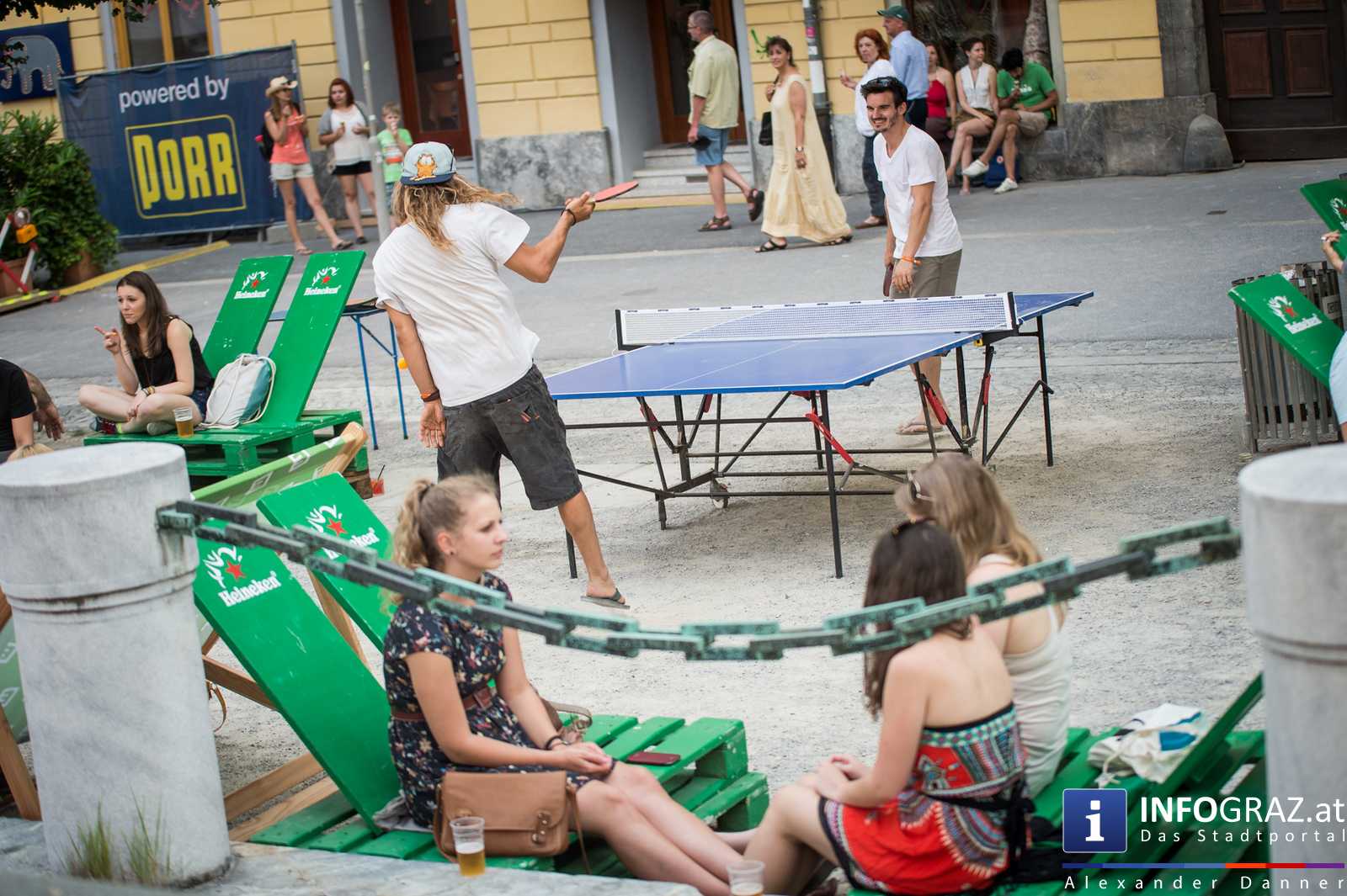 Die Hochsommer-Temperaturen am Donnerstag in Kombination mit Strandliegen und Tischtennis lieferten das perfekte setting zu den Rio-Rythmen von Cher Monsieur.