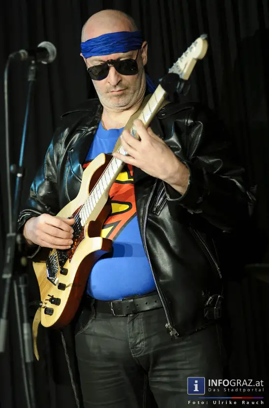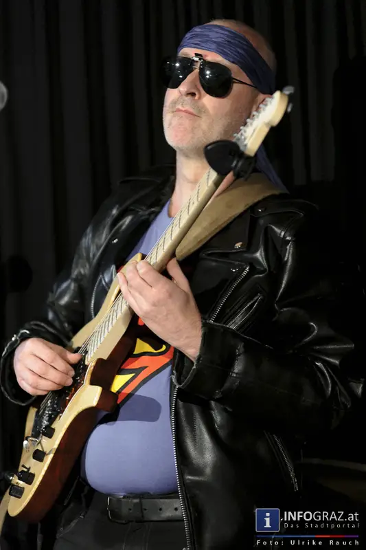 - Reini "Bandschleifer" Kogler: wringt und würgt die Stromgitarre