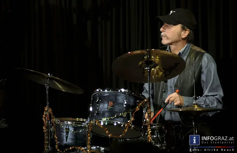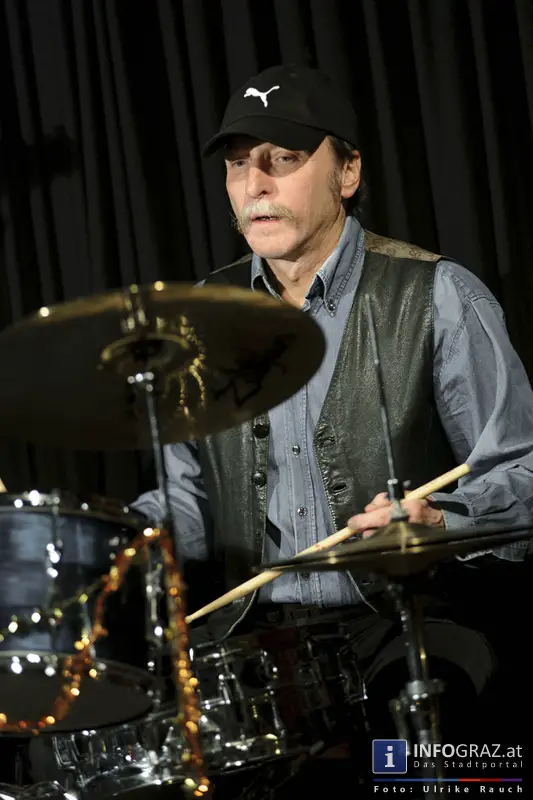 - Berndt "Bandscheibe" Luef: klappert und klopft am Schlagzeug