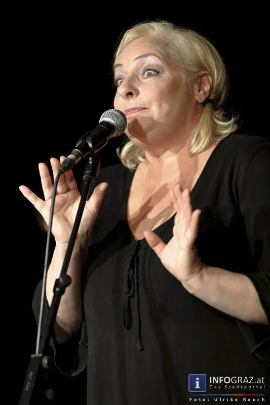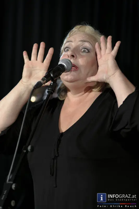 Irene S, „das Stimmband“, führt durch einen Abend zwischen Höhenflug und Absturz!
